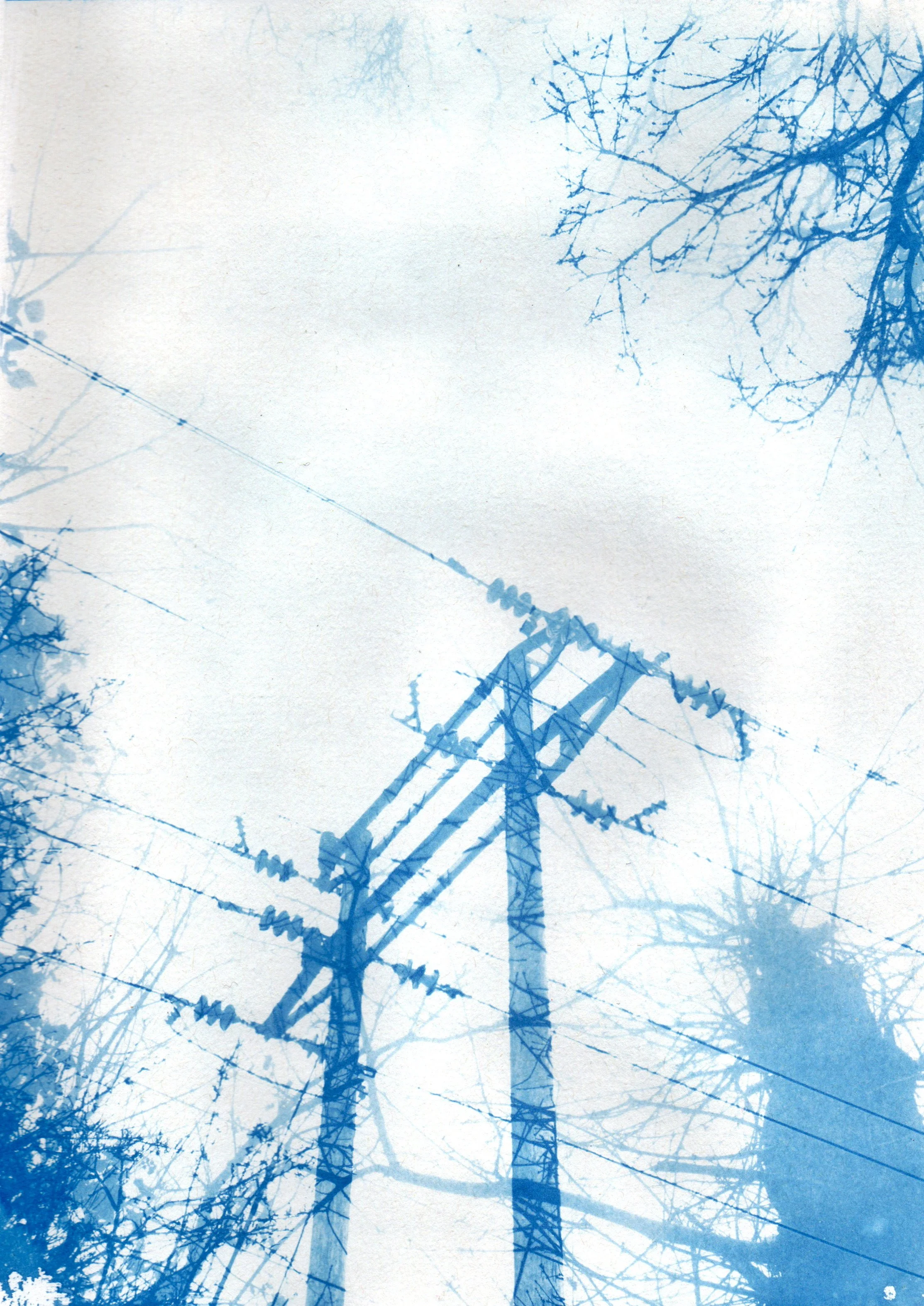 The original image in Transience is a digital video still, shot and edited during a train journey from Norwich to Falmouth. I then created a cyanotype from a digital negative of the image, and chose buddleia as a toner due to its ubiquitous nature alongside the train tracks throughout the journey. The plant was foraged from the Marriott’s Way, a disused railway line which now forms the cycle path I take to my studio in Norwich.